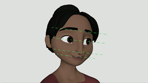 En la animación, la cara de un personaje, especialmente sus ojos, es lo que la audiencia enfoca la mayor parte del tiempo. Por lo tanto, es clave tener una buena comprensión de la postura facial para ofrecer interpretaciones atractivas de los personajes.