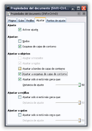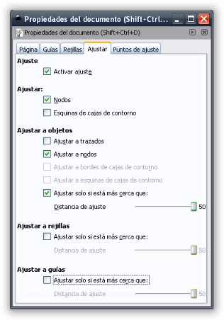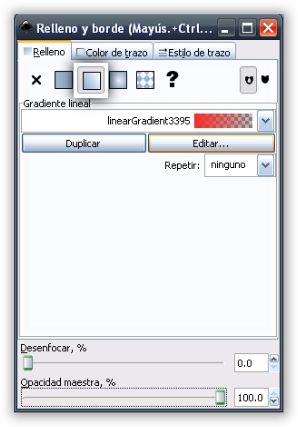 No vamos a estudiar aquí las posibilidades que se ofertan en este cuadro, pero es importante que comience a familiarizarse con el hecho de que para Inkscape un objeto consta de dos partes claramente diferenciadas y que se editan por separado.