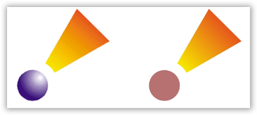 Admito que para conseguir ciertos efectos en los brazos serían necesarios algunos pequeños objetos más, así como para la creación del efecto 3d de las bolas. No creo que aporte gran cosa a estas alturas de curso una descripción de la creación de los gradientes, pero sí le recomiendo que comience las bolas con un círculo verde plano de fondo y después añada más objetos desenfocados y con gradiente. Le propongo esta solución para la esfera de arriba: