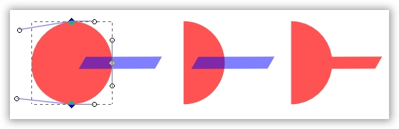 - con objetos cerrados no hay una manera de poder saber dónde considerara Inkscape que se encuentran los puntos iniciales y finales de cada objeto para conectarlos. Sera necesaria una primera prueba para poder determinarlo (bueno, esto no es del todo cierto, puede duplicar el objeto y después hacer la línea de comandos efectos/mostrar trayecto/numerar nodos para obtener esta información, pero es mucho más rápido un tanteo desde la operación de interpolación) cómo se puede comprobar en la siguiente ilustración la diferencia en el emparejamiento de los nodos da lugar a resultados muy distintos: