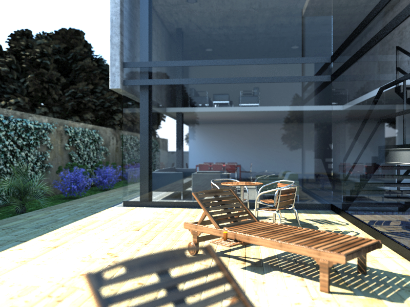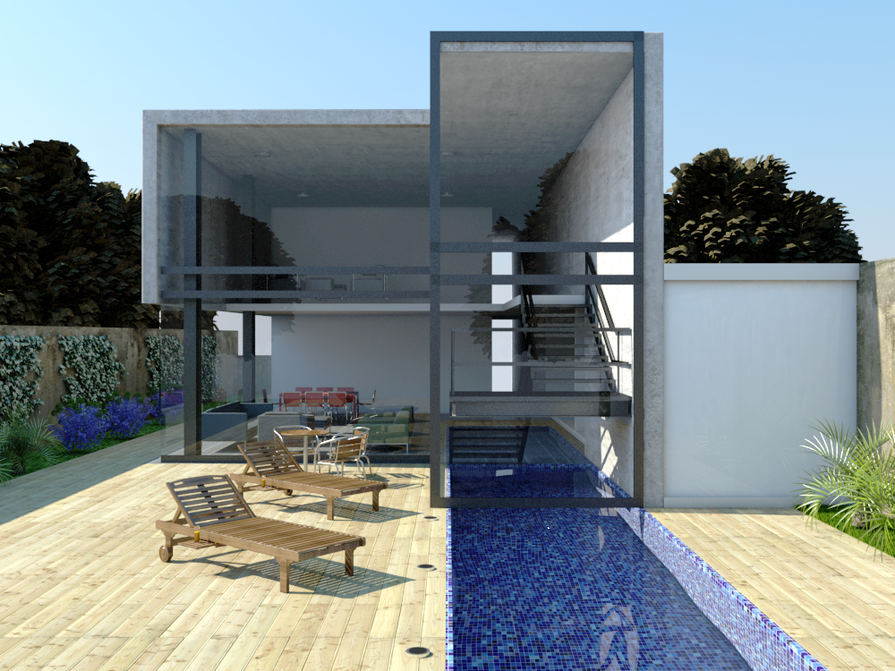 Hola, por ser el primero está muy bien, intenta el próximo render de hacerla en una resolución más grande, mínimo 1000 x 600, así se nota mejor la imagen. Sé que falta todo el relleno, pero muebles, cuadros, plantas y lámparas primordial, los vidrios algo más de reflejo o más gruesos así se notan más, y hacerles algunas divisiones así se notan, el material de las divisiones y columnas que tienes echas mejorarlas, fíjate que en la página de Vray materiales hay muchas texturas, ojo cuando las utilizas porque están al mango con las subdivisiones y demás, después puede que no te lo banque la máquina, en cuanto a la iluminación nos hoy un experto, pero subiría el Vray Sun toque más fuerte que senote que es sol. Espero avances, ánimo amigo y saludos.