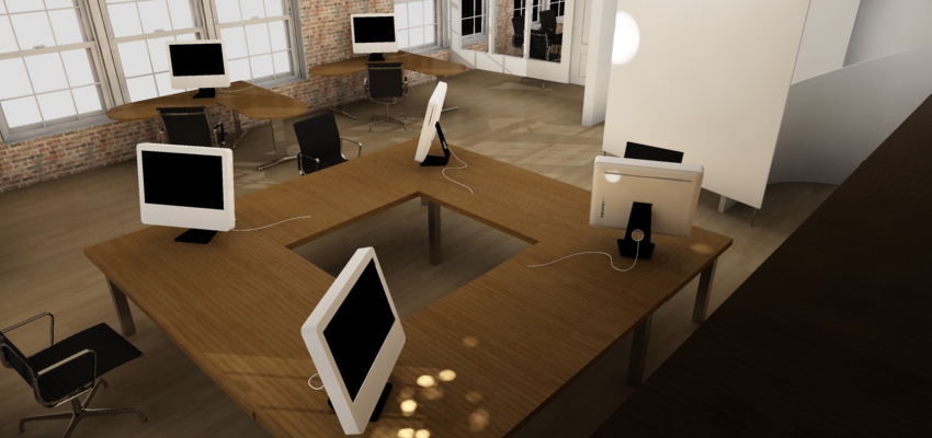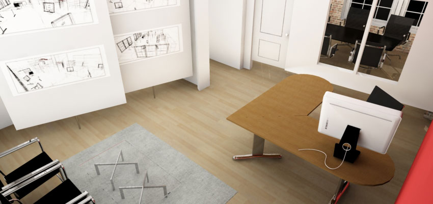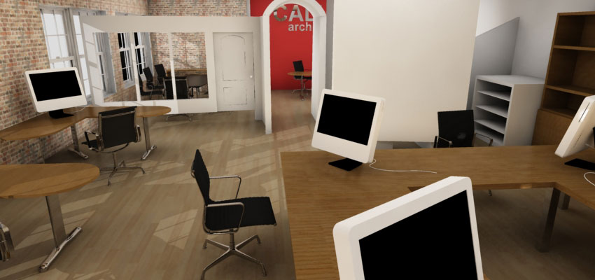 Aquí les mando unas fotografías de una oficina de arquitectura en el norte de Chicago, a ver qué les parece, ya sé que van a criticar las Imacs, pero solo muestran donde van los ordenadores (que serán PC). Saludos.