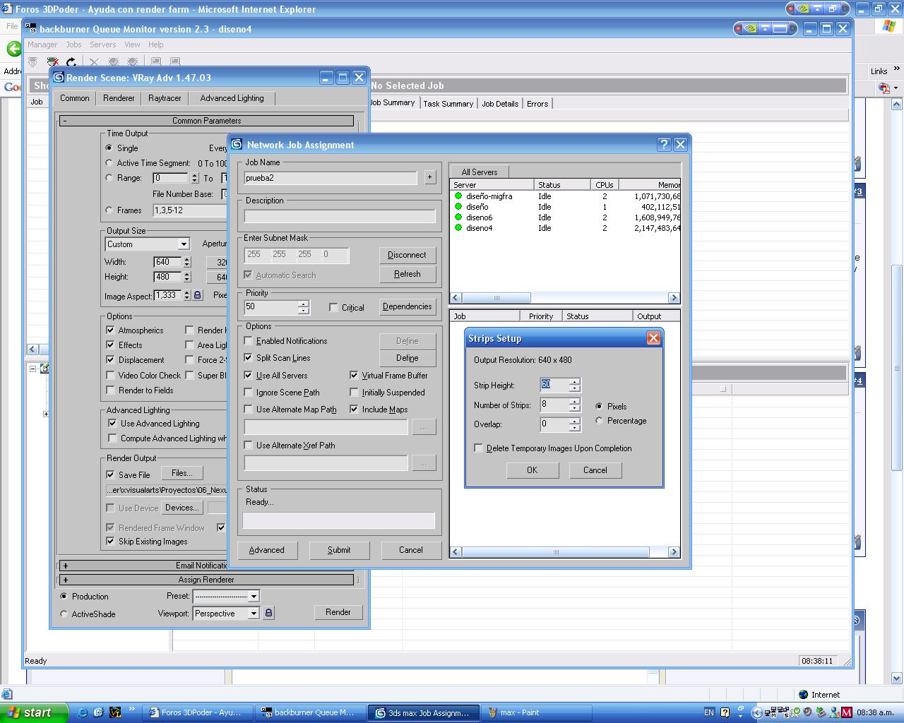 Bueno aquí dejo unas imágenes de lo que está sucediendo en mis pruebas de RenderFarm, espero esto me ayude a ser más claro en lo que corresponde a mi necesidad, nuevamente gracias por su ayuda.