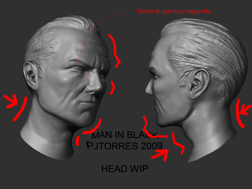 Muy bueno tío, solo dos, peros, el cuello hay que trabjarlo más, darle más volumen y forma, y la oreja como te comentan solo la zona de dentro que tienen en una vista una forma (*.rar), pero vamos que va bien.