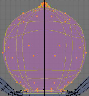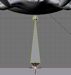 Ahora puedes agregar un grupo, presionando en el panel el botón new dándole por nombre head. Blender, naturalmente, hará corresponder esos dos elementos y usara este grupo de vértices cuando muevas el hueso head. Escoge la geometría para que se vea como la siguiente imagen: