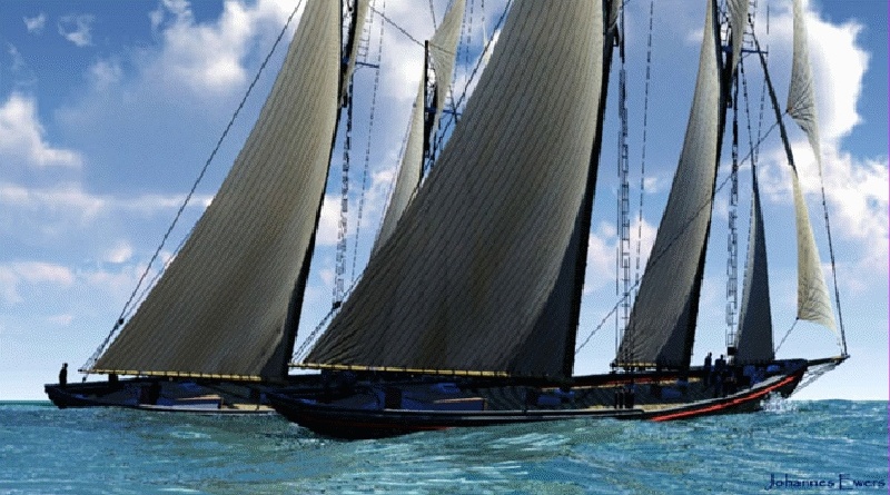 Now add a top sail or a fore sail. Setup a second mast or model a more realistic hull. The result could look like my bluenose schoner model: