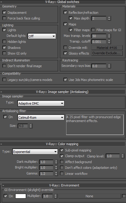 El proyecto va a avnzando y ya tengo una imagen, pero no avanzo y me gustaría mejorar la pantalla de la tele, y la calidad en general de la imagen porque no me resulta nada natural estoy usando una target light exterior como sol a 60 grados (parámetros imagen4), un cilindro cortado con un mapeado de un bosque (Vraymat) entre la casa y el sol para crear un fondo + Vray lights en las ventanas (parámetros imagen3), pero no consigo el efecto que busco. Los settings en imagen 1 y 2. Cualquier comentario o sugerencia es más que bienvenido. Gracias.