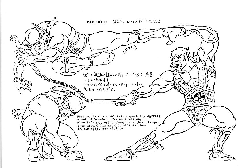 En el caso de Thundercats, las proporciones de los personajes son según el canon occidental de Andrew loomis o Burne hoggart, con ojos estilo animé, pero donde más se nota la contribución japonesa es en el ritmo y en el uso de los encuadres. Si pueden, hagan la prueba de ver episodios de Thundercats y de he-man [la serie original de los 80s] y comparen los encuadres, las escenas de lucha, y el ritmo narrativo de ambas series.
