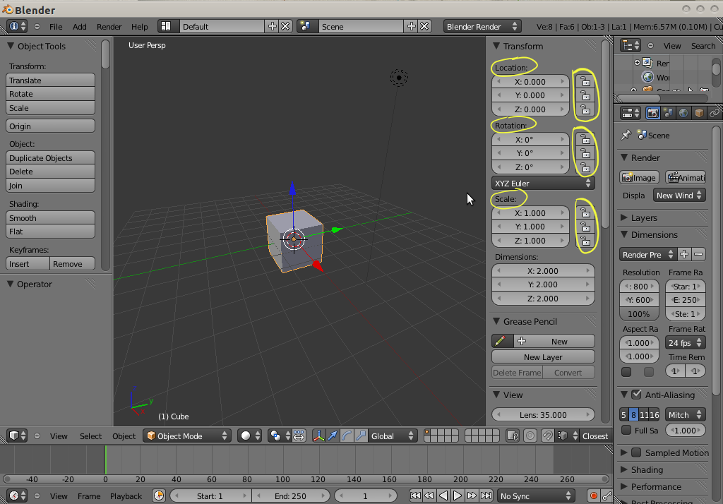 Escalar y rotar bloqueados en Blender 3d 2 5