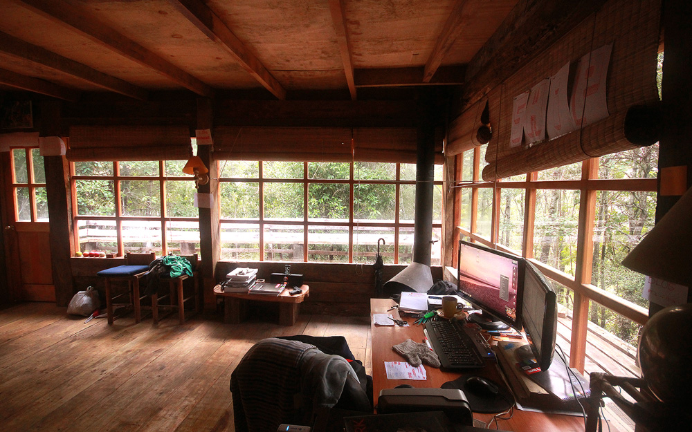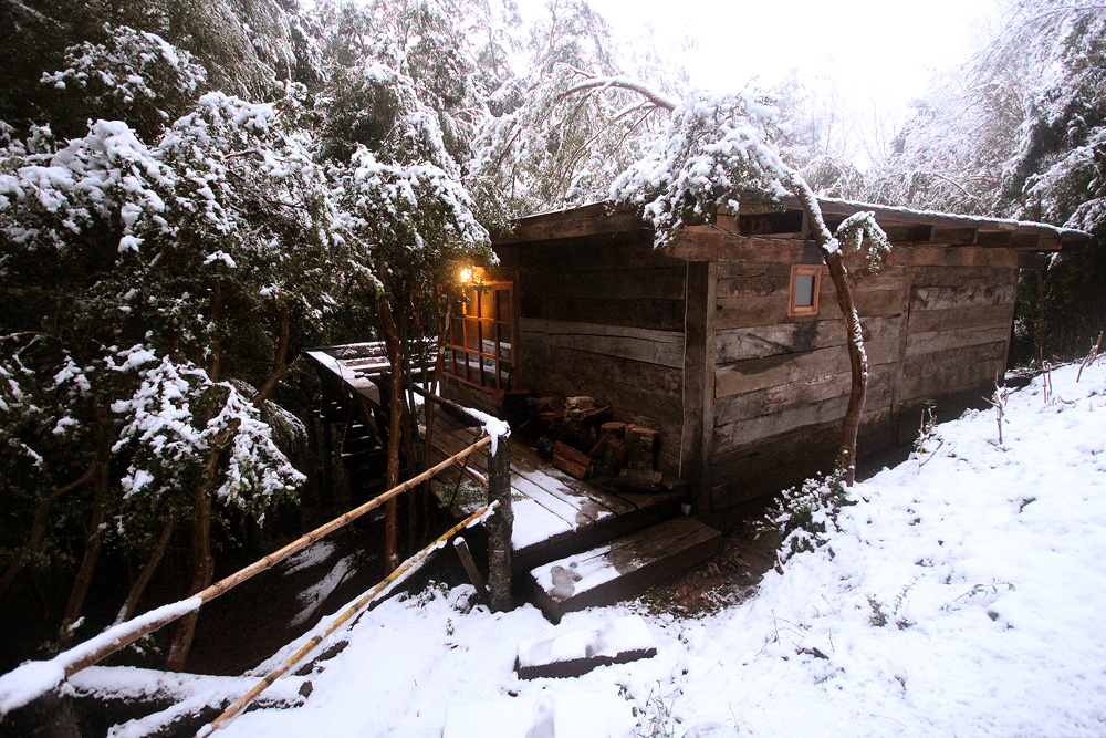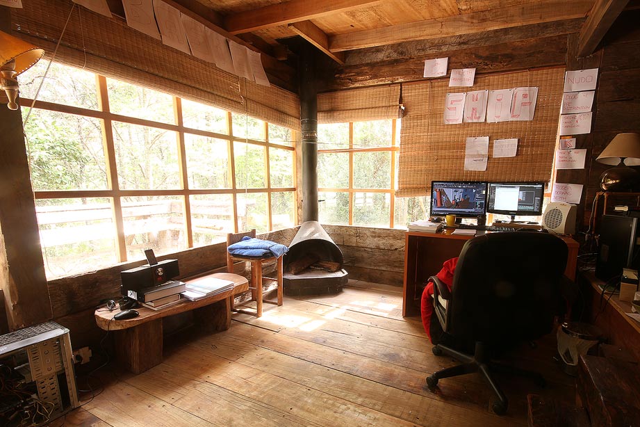 A ver cuando me regalan una cabaña así para retirarme a hacer mi corto. No, en serio, a ver si cuando llegue a casa veo el corto, pero la cabaña es una pasada. Yo me lo imaginaba allí, viviendo bajo cuatro ramas, con barbas y harapues en plan ermitaño.
