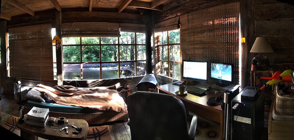 Vaya eso mismo pensé yo, digo va, seguramente habrá grabado videos para hacer un corto o algo así y luego hacer la edición en su casa, pero que conyo, ahí esta él, con su PC en medio de la montanya, sin que nadie le moleste, es el amo y todavía no he visto el corto.
