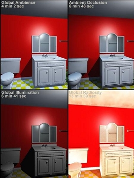From these render times you can se that the gr render is taquíng twice as long as the AO or GI renders. It is generally worth the time for an indor realistic render, outside renders generally have diferent results when applying the diferent light models.