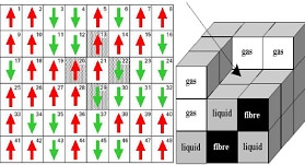 Statistical physics in general deals with systems with Many Degrees of Freedom. These Degrees of Freedom, in our case, are represented by the so called ising variables. We assume that we know the hamiltonian (the total internal energy) of the system, the problem is computing the average or equilibrium macroscopic parameters observable (energy and liquid Mass uptake) for a given initial system configuration. Moreover, we Will monitor the kinetics or Even dynamics of the system so as todo simulate the wicking behavior with time, for more detail se [3],[4].