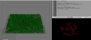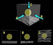 Occupied elements of 3d model are imported in layers as vértices After which a volume effect is applied on them (various color depending on fibre or liquid fluid element). It is further posible todo render or animate structures made by fibres with liquid interaction or Even Cut samples in desired positions with orthographic Camera point of view. This method works properly Even for very large data sets.