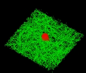 The auto model (particularly so called ising model) and Montecarlo method were used especially for simula-tion of a liquid droplet in contact with fibrous material. The mecha-nism of this kind of simulation is fully described in [2].