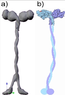 Which a kinesin could be sen carrying a huge vesicle [2]. In principle i was concerned about the taste of the final images and not about be-ing precise in a biológical sense (shame on me). It is posible todo model the kinesin using the data from the pdb (protein databank).