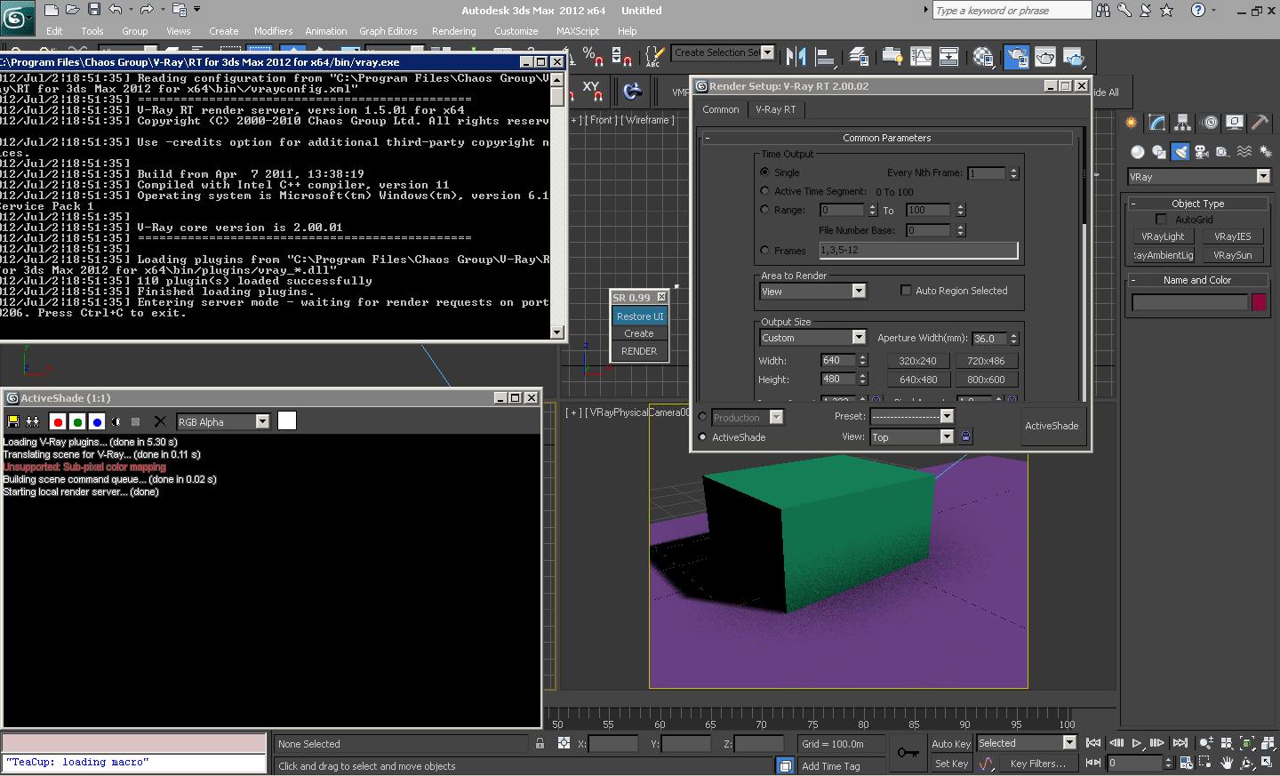 Hay, alma de cántaro, no se te ha pasado por la cabeza que sea un problema de la licencia de Vray, es algo que sucede cuando instalamos el programa y no tenemos la licencia. Estoy seguro que lo instalaste correctamente y que incluso aplicaste el crack, pero para algunas versiones del rt no es suficiente. Hasa aquí puedo leer.