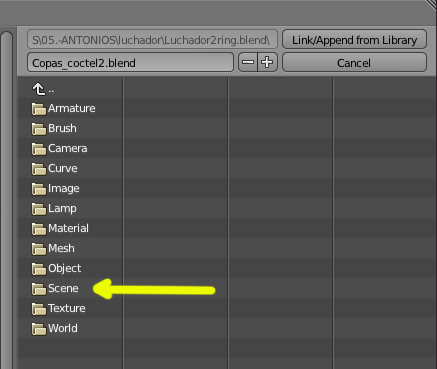 Ahora que lo dices, si. Es verdad que hay esa opción de uide lo que comentabas antes, la forma de no tener que cargar objeto a objeto, es cargar la escena entera, entonces el append, lo haces sobre scene (subo imagen).
