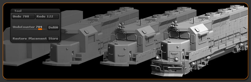 La función historial deshacer, permite ahora una capacidad de deshacer casi ilimitada, o mejor dicho, limitada por las características de la máquina que esté utilizando, ahora la herramienta se guarda como parte del proyecto de ZBrush, por lo que no importa cuántas veces haya abierto y cerrado la sesión, siempre se guardará la información de deshacer, incluso se puede crear una película utilizando este historial, lo que vendrá muy bien para crear tutoriales o ayudas en el proceso de creación, nos permite volver al paso que deseemos en nuestro proyecto.
