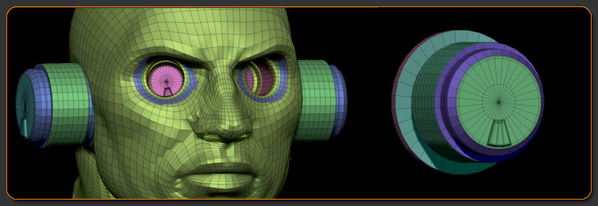 Fusionar mallas, permite intercambiar parte de la superficie de su modelo con otra pieza de topología, salvando automáticamente los polígonos para mantener una malla transparente, simplemente se definen los grupos de polígonos en su modelo y luego se remplazan esas áreas con una nueva malla de otro modelo, combinando el nuevo elemento en la malla de soporte para ajustar los polígonos al máximo.