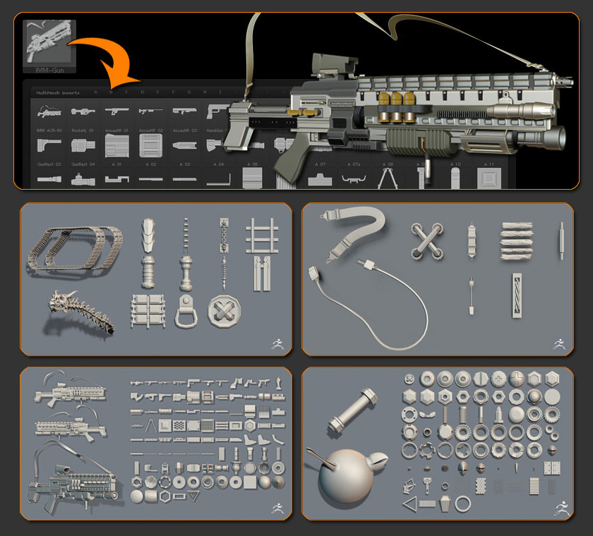 Entre sus principales características, destaca im, que permite insertar pinceles multi malla combinando bibliotecas enteras de objetos en un solo pincel, seleccionando cualquier objeto e insertándolo en su modelo, otra característica a destacar es Tri im, aún más avanzada que la herramienta anterior, cuando se dibuja una curva, se colocaran las tapas en los extremos con el segmento medio duplicado a lo largo de la curva, permite construir de forma instantánea cadenas, cremalleras y otras forma complejas en 3d.