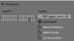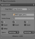 Worldspace/worldspace selected. Repeat this with Def-upper_arm. L.02, Def-thigh. L.02, and Def-thigh. R.02, using their equivalent new parents and constraint targets. (in other words, the copy rotation constraint on Def-thigh. R.02 is org-thigh. R).