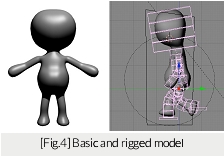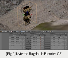 The next step was todo Rig the character, the process involved the application of Bones in the Ragdolls body and then the animation of the Bones for realistic character movement [fig.4], the animation actions included a Walk Cycle, running and jumping states and a breathing state for the dollsstanding position.