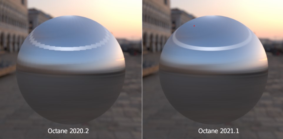 OctaneRender 2021.1 ahora interpola vectores tangentes de superficie entre vértices cuando una malla utiliza materiales anisotrópicos.