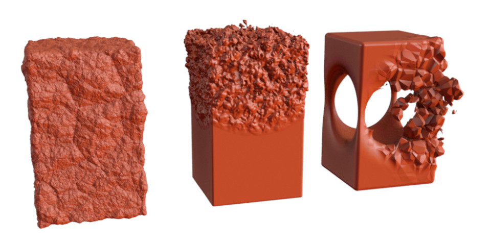 La última actualización del software incluye mejoras en herramientas para manipular texturas. Una de ellas permite distribuir patrones de forma aleatoria sobre superficies, pero ahora con mayor control. Es posible deformar ese patrón utilizando mapas de textura o ruido generado por procedimientos. Además, se amplían las opciones de proyección, ya no limitadas a las coordenadas UV de la malla.