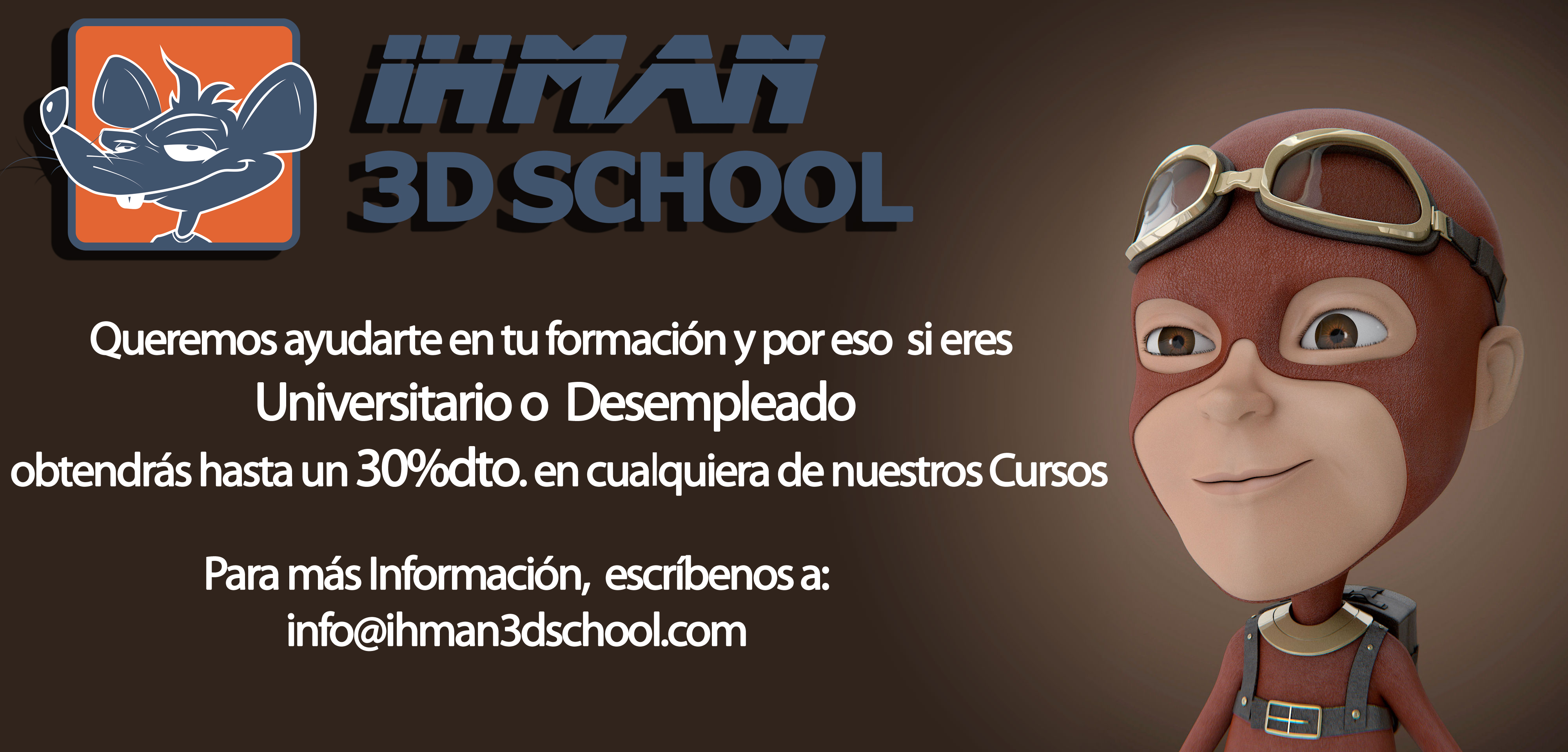Os recordamos que tenemos nuevo Curso en IHMAN 3D SCHOL que comienza el próximo 15 de Marzo. No te puedes perder este Curso con el que serás capaz de desarrollar un personaje a partir de un boceto, trabajarlo y darle un acabado profesional. Además, aprenderás a presentarlo adecuadamente.