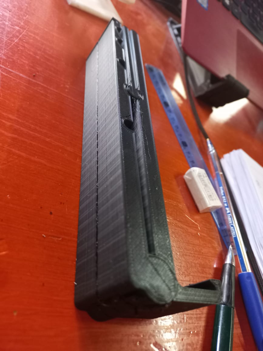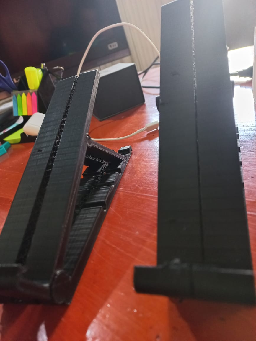 El blanco es el ultimo y es el caso más común, donde se extruye poco y después ya queda cualquier cosa con las capas. En el caso del soporte negro, fue antes de ayer, lo deje imprimiendo y cuando me desperté al otro día estaba así, con un par de capas al medio faltantes.