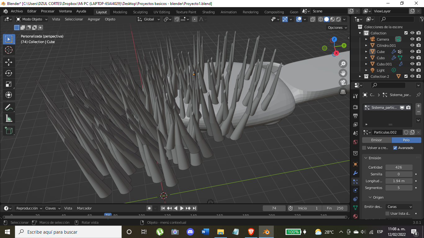 Bueno, estaba haciendo el tutorial famoso de youtube de "La guía definitiva de blender", Pero cuando empecé por el cepillo empecé a tener un error supongo en el sistema de partículas, El problema es que el "pelo" se sale de donde eh seleccionado que debería ir.