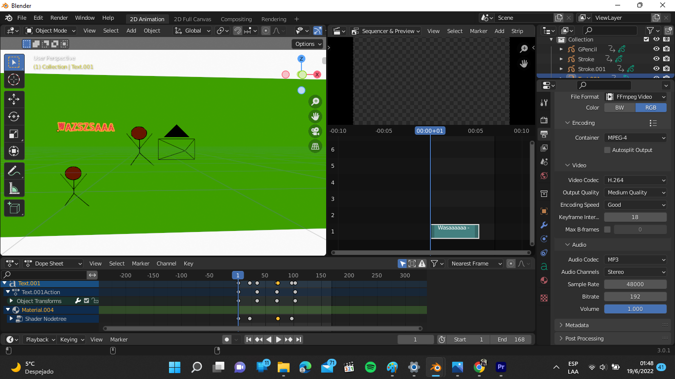 Me fije en post processing y está todo activado. Después intenté con un nuevo proyecto donde puse un grease pencil y un texto en movimiento con musica, y al renderizarlo no tuve éste inconveniente, dejo el archivo a ver si encontras el error, te super agradezco por toda la ayuda!!!
