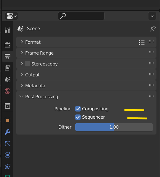 Mira a ver si no tienes activado en postproceso las opciones de composición y secuenciador...