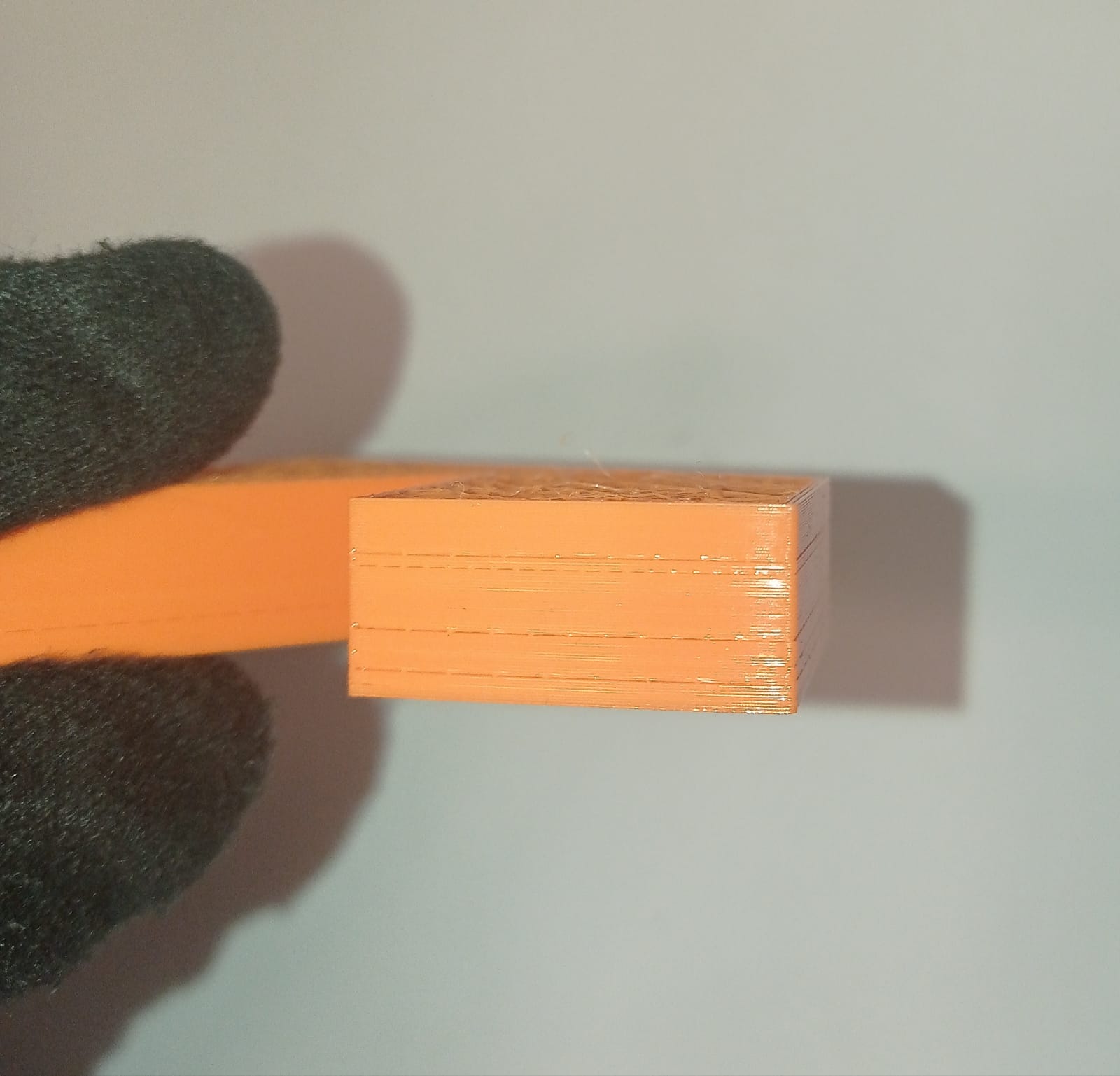 Al principio la pieza normalmente imprime sin ningún problema, el relleno está bien, las primeras paredes también, están juntas, ningún problema, pero luego de poco tiempo, supongamos que desde la capa 15 para arriba, y no es siempre en el mismo lugar, se separa un poco, pero lo suficiente como para verlo, la capa una de otra, pero no como el "Cracking", es como que dejase de extruir por un segundo y luego sigue.