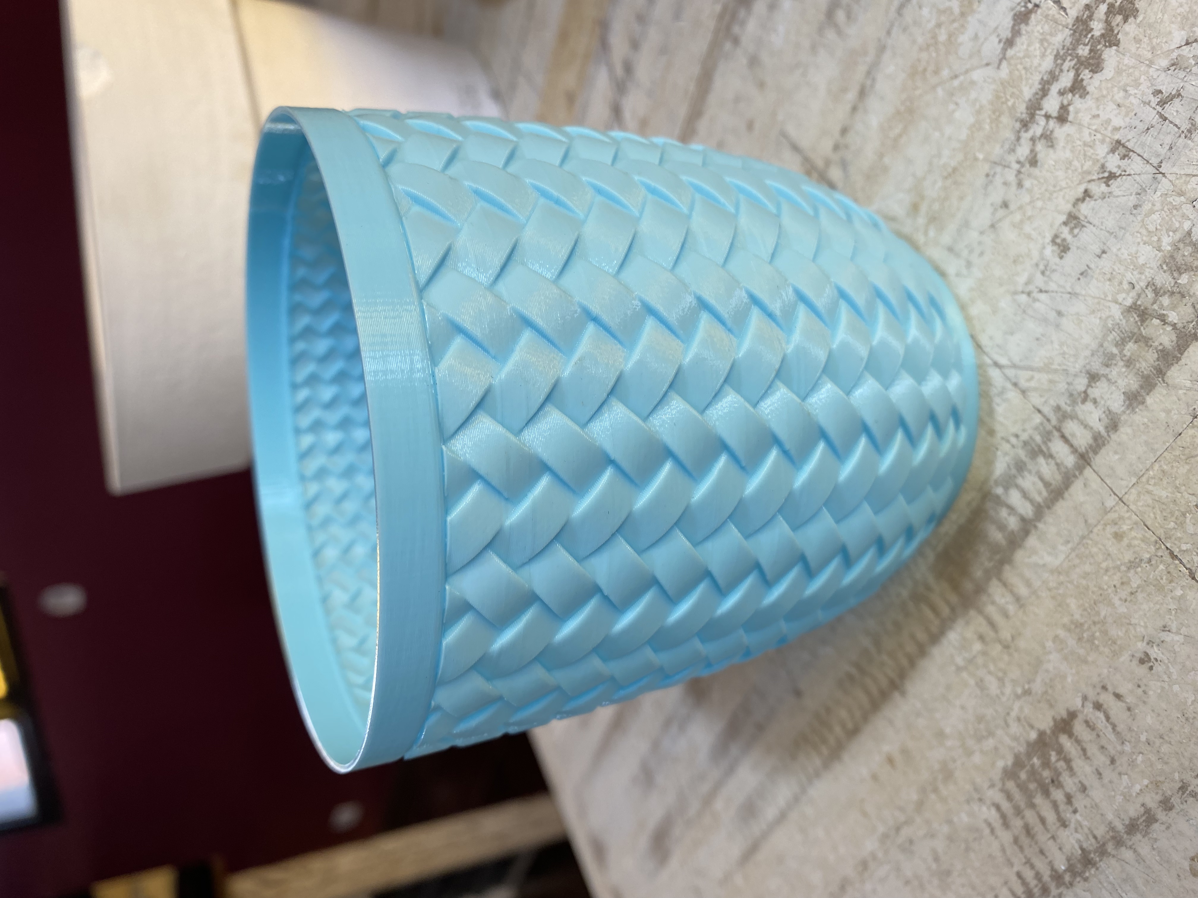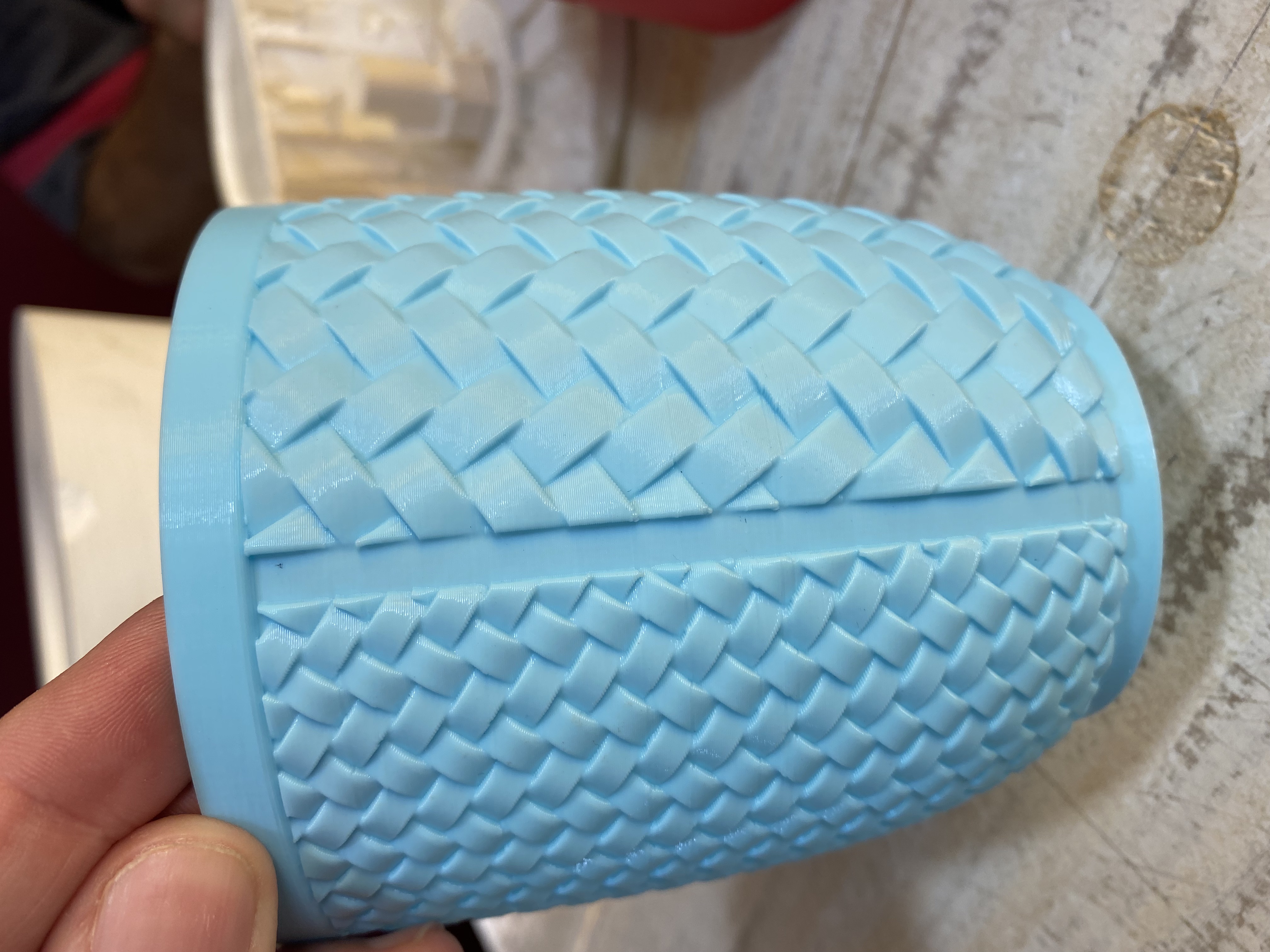 Hola, estoy hace unos cuantos días intentando modelar este vaso en donde se ve esta textura con relieve para luego imprimir en 3d. ¿Alguien me puede dar una idea de como modelar este vaso? Muchas gracias.