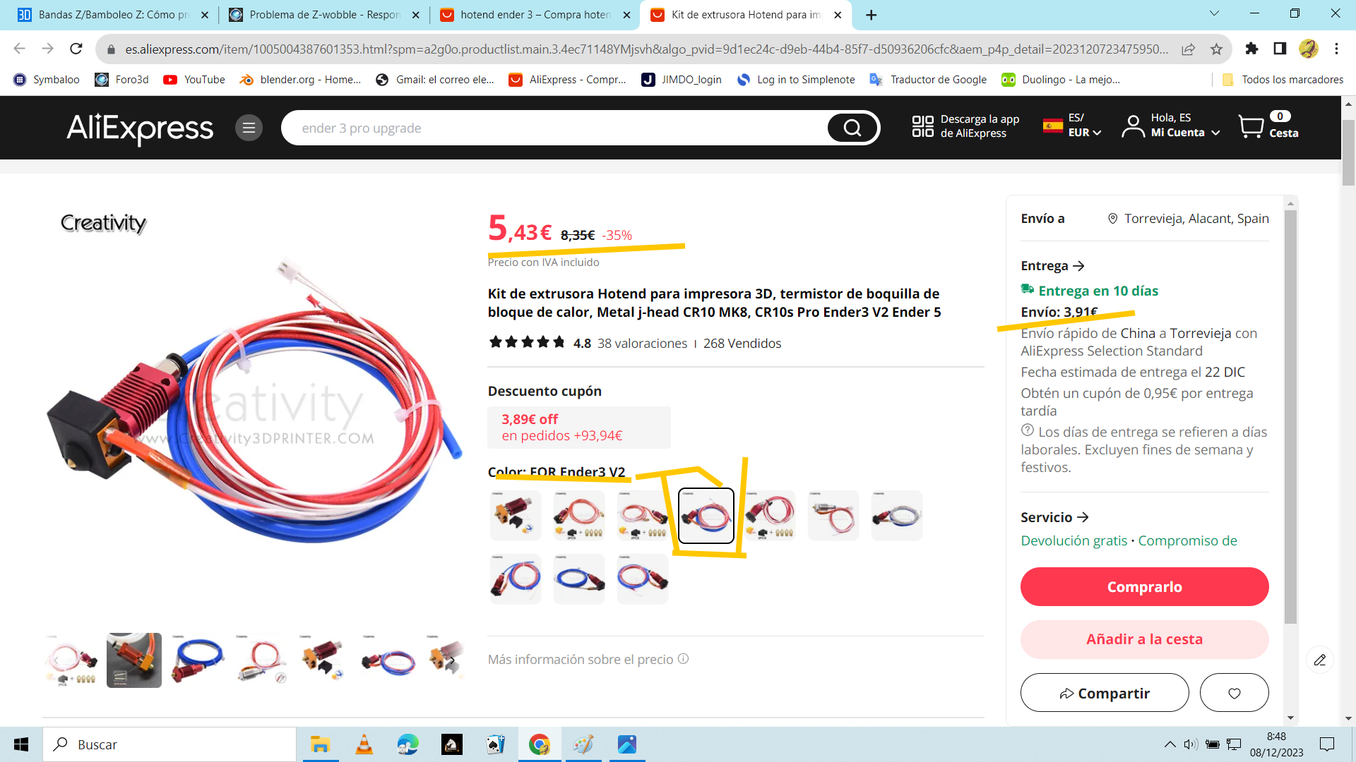 Lo segundo, que sería lo de la boquilla, es lo más obvio. Debes revisar el hotend (sacas primero la carcasa del ventilador) para asegurarte de que, cuando esté caliente, no tenga pérdidas de filamento por los lados o que el tornillo diminuto que hay esté bien apretado.