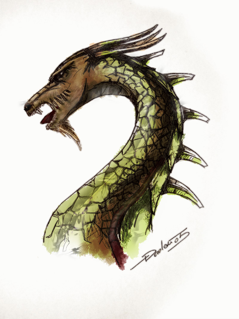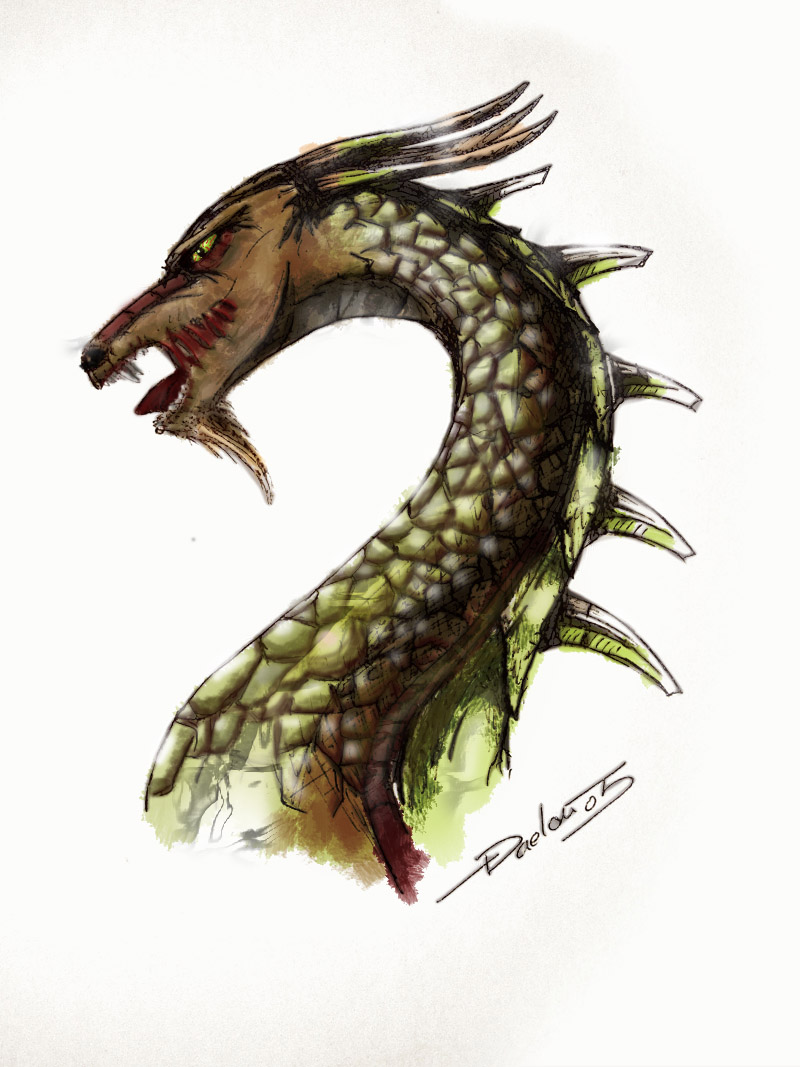 Está chulo, pero creo que las escamas deberían estar más ordenadas, ¿no? Aunque nunca he visto un bicho de estos. Tampoco me convence el hocico por que parece que esté girado, pero la cabeza se mantiene de perfil. Saludos.