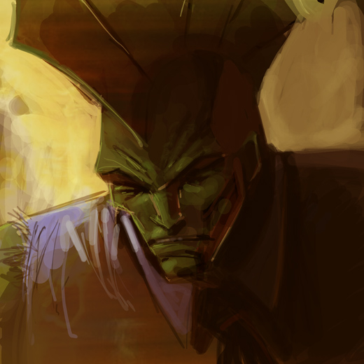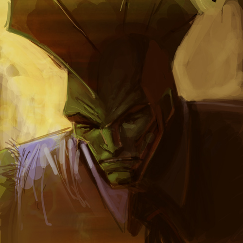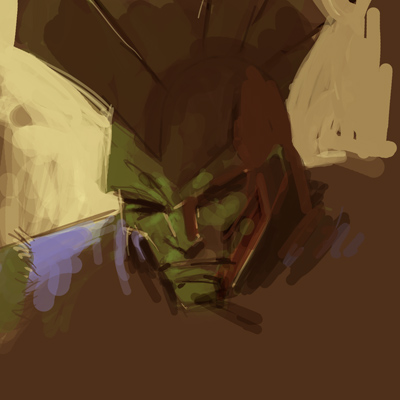 Nada pues, me gusta cómo has usado el color, las siluetas. Como has cortado el borde de atrás con el amrillo. Como usas colores saturados. Como dejas pinceladas más suavizadas, y otras más cortantes. Como detallas en algún sitio más que en otro. Como has simulado la luz y has creado el ambiente en la aparte trasera de la cresta, y como has solucionado el borde delantero de la misma. Te vale así?
