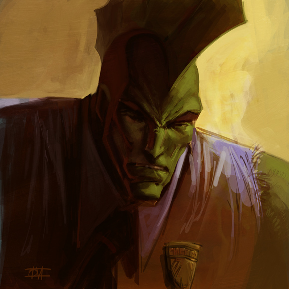 No es de tus mejores dibujos, pero el color me resulta fabuloso, felicidades genio. Bonita novia.