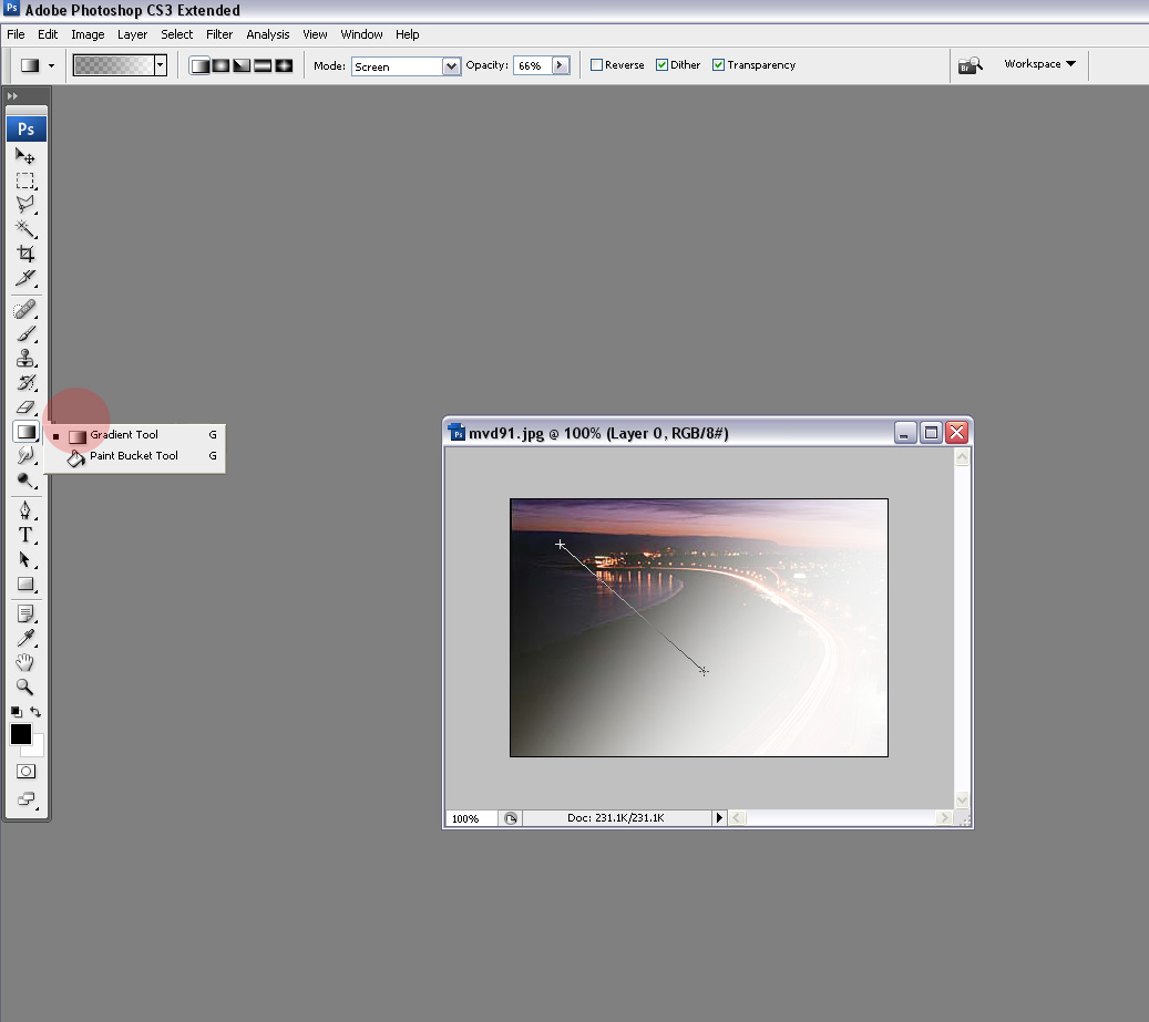 Realmente no soy yo el que utiliza el Adobe Photoshop, pero yo creo que le pasa con el cubo de pintura y cuando alarga (que no sé que comando es), no sé si te servirá de algo. Gracias y saludos.