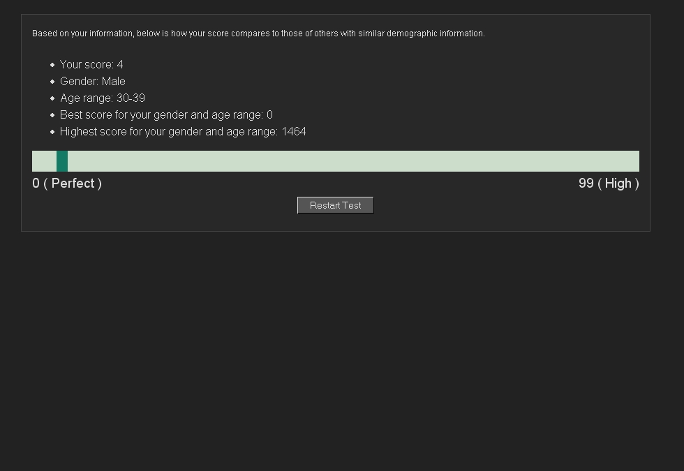 Aquí mi test. No está mal para 48 tacos y sin gafas todavía.