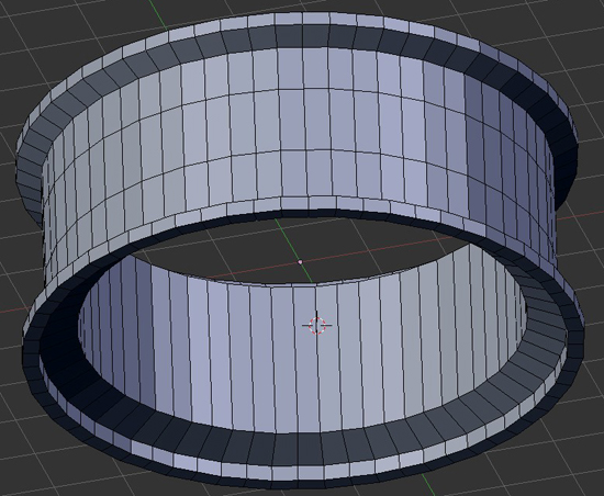 Select the entire object and press e todo extrude again and hit enter without moving your selection. From the side view move the extruded vértices down a bit until the tuve you are creating is the size of a Rim. Se fig 3 and 4.