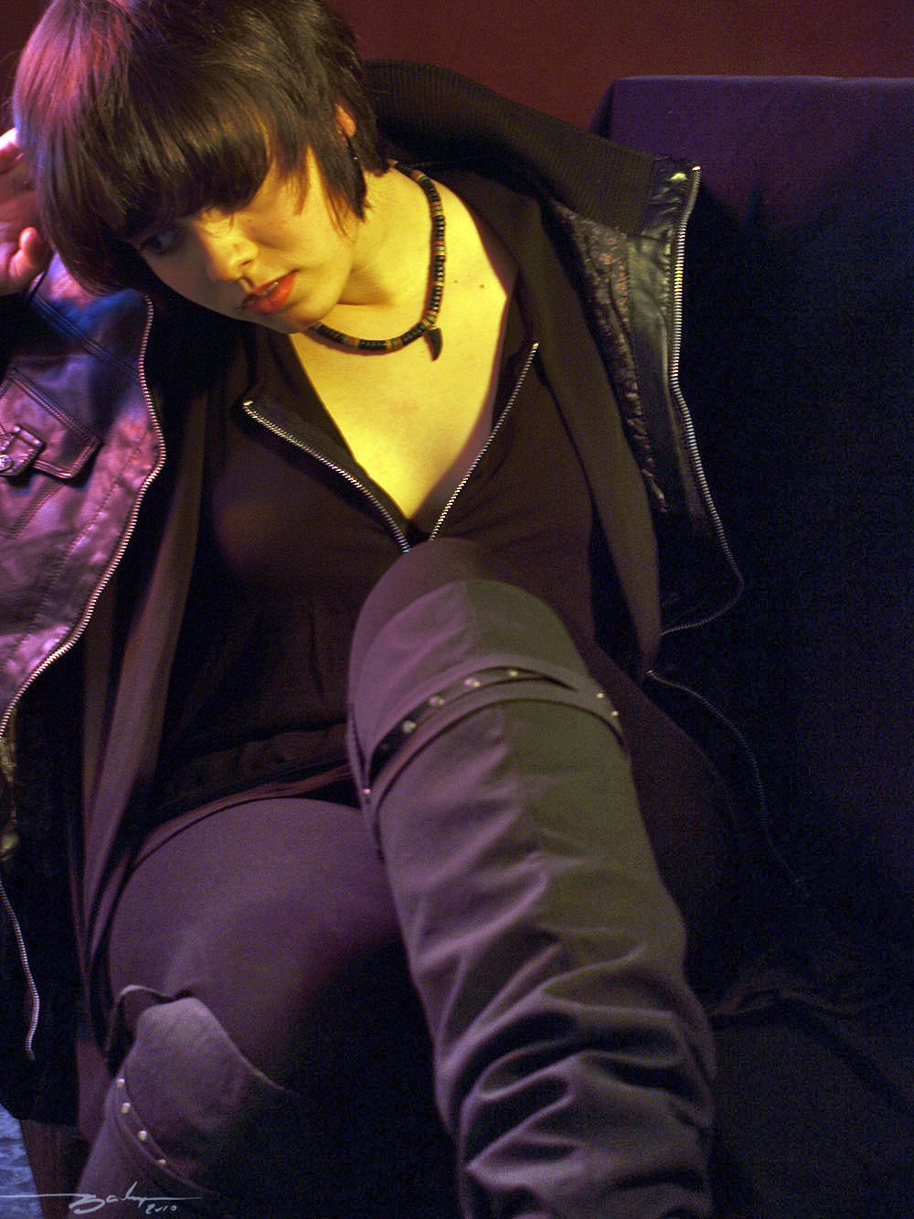 La cuarta y la quinta me gustan las expresiones de la chica, pero quedan composiciones demasiado encerradas para mí gusto. El que le corte ligeramente la cabeza en el retrato de primer plano (la cuarta fotografía) o el poco espacio y corte del brazo derecho (en la izquierda) en la quinta, quizás sean los causantes de que me de esa sensación.