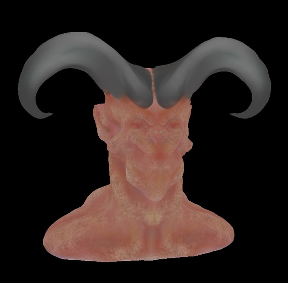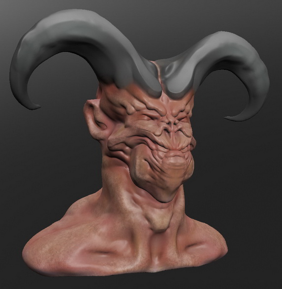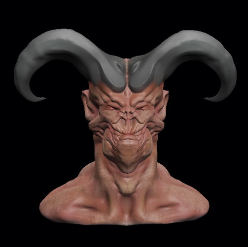 Este demonio con paperas lo he empezado desde una esfera, los cuernos y del cuello para abajo es geometría añadida vía move.