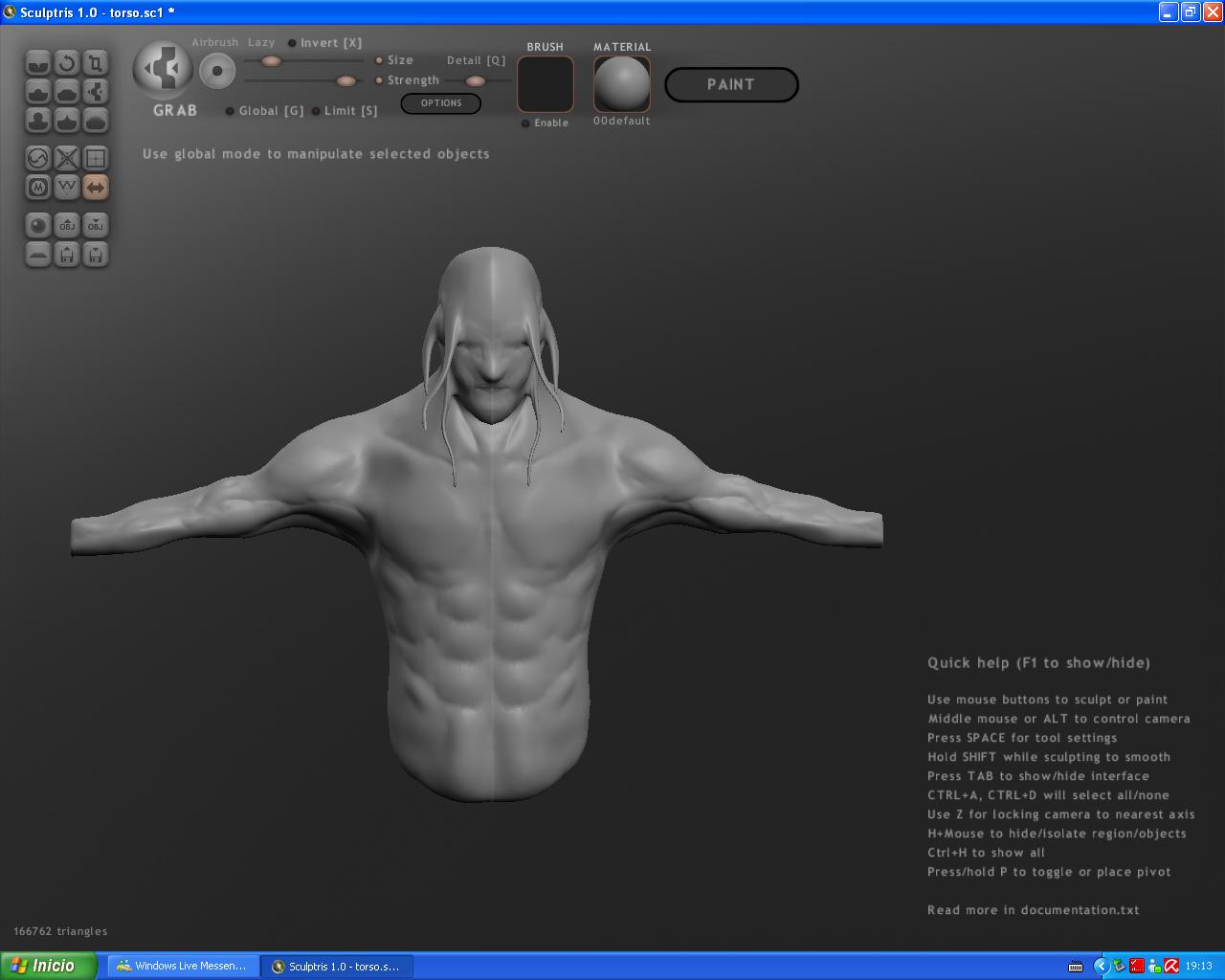 Este programa estuve tocándolo también hace un par de semanas cuando me lo dio a conocer al3xd y no está mal lo malo es eso que trabaja con miles de triángulos, ahí dejo el torso en el que estuve trabajando, por lo que llevo oído parece ser que va bastante bien en el tema de utilizarlo junto con otros programas como 3dsMax y ZBrush, aún no he podido comprobarlo.