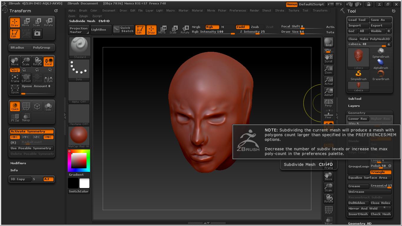estaba moldeando tranquilamente, cuando necesitaba una división más, y bueno no me deja, ya me moví en la paleta preferencias en mem, pero no sede, si alguien me pudises guiar, o a qué se refiere exactamente soy nuevo en esto gracias.