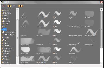 El panel formas de pincel obtiene cambios similares, lo que mejora el rendimiento al cargar miniaturas de pinceles y permite examinar formas de todas las categorías de pinceles simultáneamente.