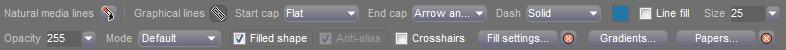 Las herramientas de rectángulo y elipse sin relleno, así como las herramientas de línea y arco se pueden usar con cualquiera de los medios naturales. Simplemente seleccione el medio que desea, luego seleccione la herramienta de dibujo con la que desea dibujarlo.