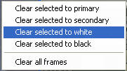 Archivo adjunto 233658 El botón de borrar borra la imagen al color secundario actual. Al hacer clic derecho aparece un panel de opciones para borrar su imagen o selección actual. También puede borrar una animación completa desde aquí.